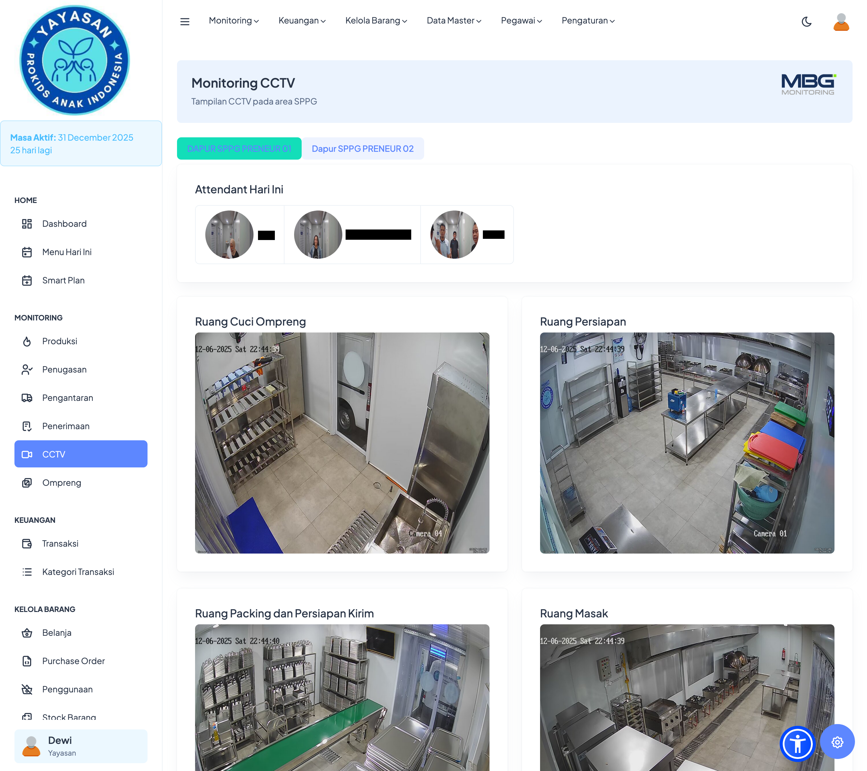 Untuk memastikan kualitas dan kepatuhan SOP, MBG Monitoring terintegrasi dengan CCTV di setiap dapur.