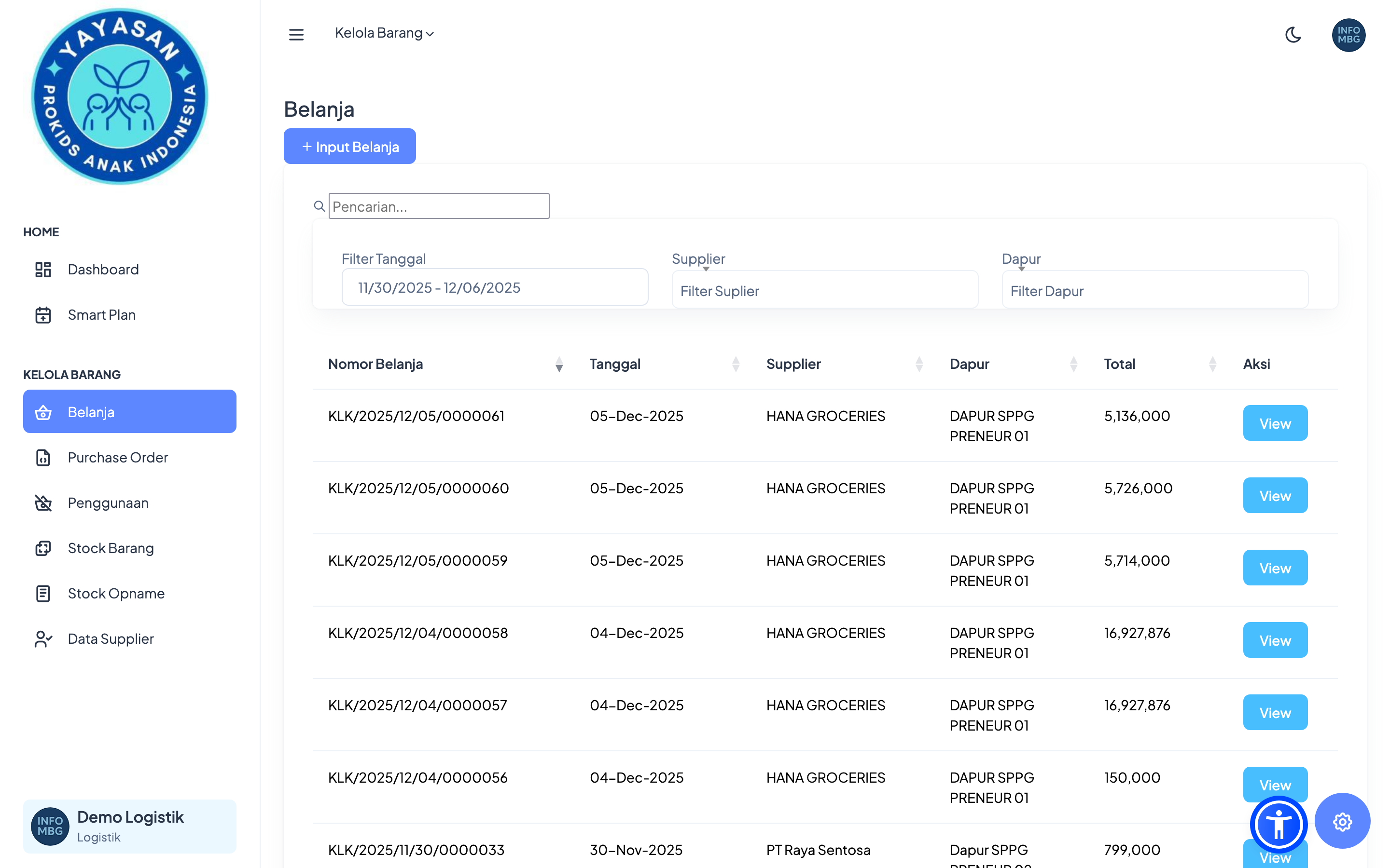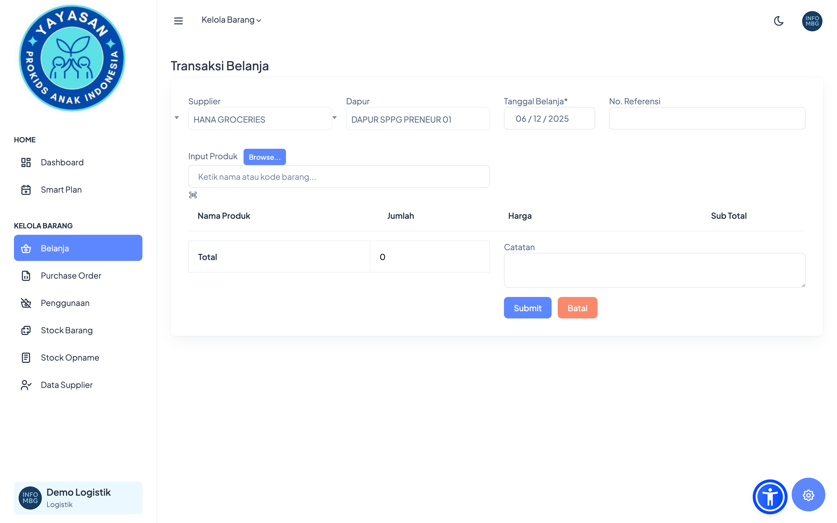 Memberikan visibilitas kepada tim pengadaan atas kebutuhan tiap dapur.