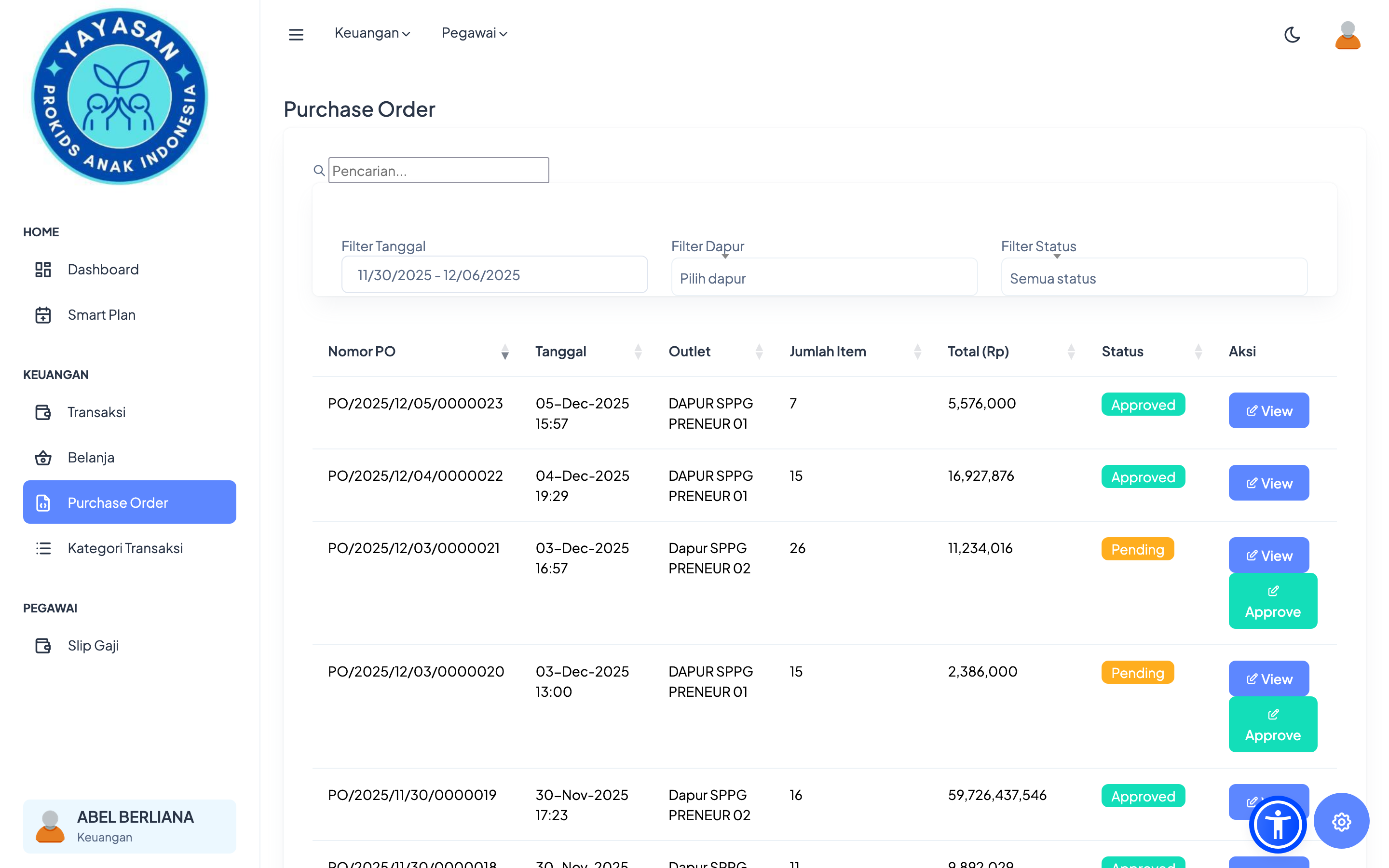 Pengajuan belanja masuk ke daftar PO.